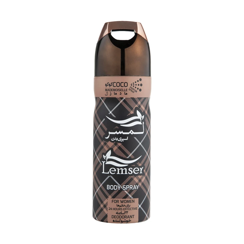 اسپری بدن 200 میل زنانه کوکو مادمازل لمسر برای تمام خانم ها مناسب است. چه تأثیری دارد: اسپری بدن 200 میل زنانه کوکو مادمازل لمسر بوی بد عرق را از بدنتان محو می کند، میزان تعریق را کاهش می دهد و دارای رایحه ای گلی و شیرین می باشد که برای مدت طولانی باقی مانده و باعث افزایش اعتماد به نفس و جذابیت شما می شود.