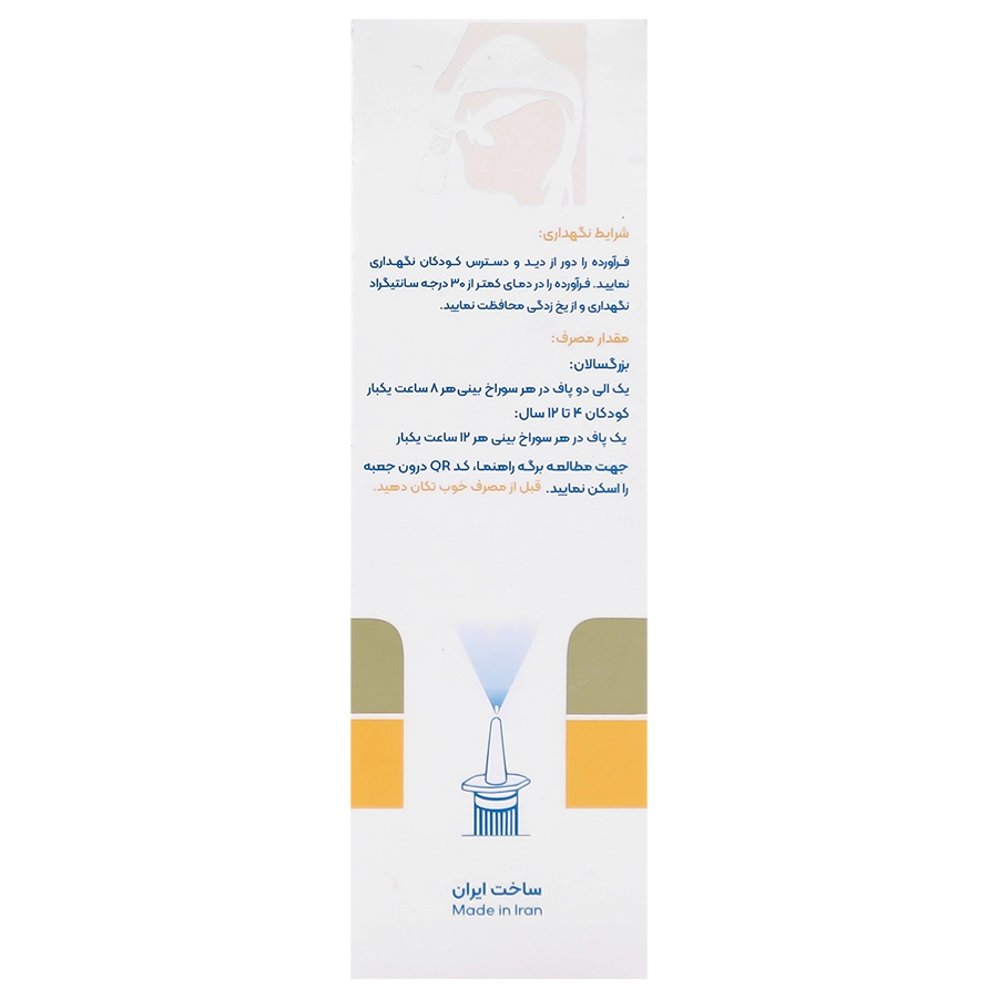 موارد احتیاط: قبل از مصرف این فرآورده در صورت وجود هر گونه حساسیت بارداری با شیردهی به پزشک خود اطلاع دهید. در صورت نیاز به استفاده همزمان با سایر فرآورده های بینی باید حداقل 20 دقیقه فاصله بین زمان مصرف دو فرآورده وجود داشته باشد. در صورت بروز آبریزش بینی مصرف فرآورده قطع گردد. در صورت بروز تحریک در بینی یا علائم عفونت سینوس یا بینی نظیر تب، درد و گرفتگی بینی مصرف فرآورده قطع گردد. در صورتی که سابقه ی جراحی سینوس دارید قبل از مصرف با پزشک خود مشورت نمایید. گاهی خشکی و پوسته ریزی بینی منجر به خونریزی از بینی می شود، در صورت خونریزی شدید به پزشک خود اطلاع دهید. این فرآورده به دلیل احتمال بروز حساسیت به روغن کنجد برای درمان و رفع خشکی بینی نوزادان مناسب نمی باشد.