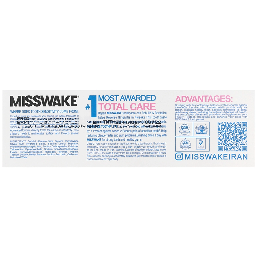 خمیر دندان میسویک دیلی وایتنینگ، کاهش درد دندان های آسیب دیده و حساس