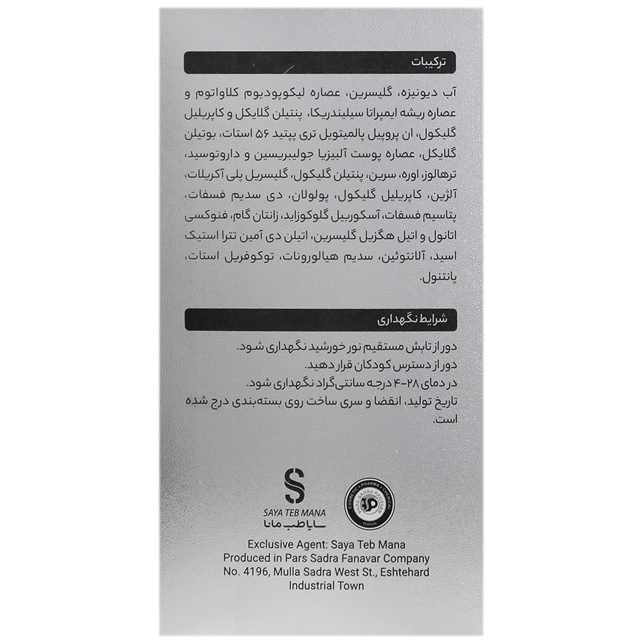 آب دیونیزه (Deionized Water)، گلیسیرین (Glycerin)، عصاره لیکوپودیوم کلاواتوم (Lycopodium Clavatum Extract)، عصاره ریشه ایمپراتا سیلندریکا (Imperata Cylindrica Root Extract)، پنتیلن گلیکول (Pentylene Glycol)، کاپریلیل گلیکول (Caprylyl Glycol)، ان پروپیل پالمیتوئیل تری پپتید 56 استات (N-Palmitoyl Tripeptide-56 Acetate)، بوتیلن گلیکول (Butylene Glycol)، عصاره پوست آلبیزیا جولی بریسین (Albizia Julibrissin Bark Extract)، داروتوسید (Darutoside)، ترهالوز (Trehalose)، اوره (Urea)، سرین (Serine)، گلیسیرین پلی اکریلات (Glycerin Polyacrylate)، آلژین (Alginate)، پولولان (Pullulan)، دی سدیم فسفات (Disodium Phosphate)، پتاسیم فسفات (Potassium Phosphate)، آسکوربیل گلوکوزید (Ascorbyl Glucoside)، زانتان گام (Xanthan Gum)، فنوکسی اتانول (Phenoxyethanol)، اتیل هگزیل گلیسیرین (Ethylhexylglycerin)، اتیلن دی آمین تترا استیک اسید (Ethylenediaminetetraacetic Acid, EDTA)، آلانتوئین (Allantoin)، سدیم هیالورونات (Sodium Hyaluronate)، توکوفریل استات (Tocopheryl Acetate)، پانتنول (Panthenol).