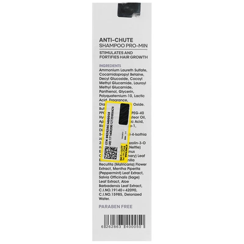 آمونیوم لورت سولفات70%، کوکامیدو پروپیل بتائین30%، دسیل گلوکوزاید 50%، دسیل گلوکوزاید 50%، 1سدیم لوریل سارکوزینات، دی آمینو پیریمیدین اکساید، بوتیلن گلایکول، آب، پی پی جی 26 بوتت26،پی ای جی 40، روغن کرچک هیدروژنه، آپیژنین، اولئانولیک اسید، بیوتینویل تری پپتاید1، سدیم PCA، سدیم لاکتات، آرژنین، آسپارتیک اسید، PCA، گلایسین، آلاتین، سرین، والین، پرولین، ترونین، ایزولوسیون، هیستیدین، فنیل آلانین، پانتنول(پیش ساز ویتامین B5، عصاره گزنه، عصاره رزماری، عصاره بابونه، عصاره نعناع فلفلی، گلیسیرین99,5%، گوار هیدروکسی پروپیل تریمونیوم کلراید، اسید لاکتیک، پیریدوکسین، اسانس مجاز آرایشی، دی سدیم EDTA، سدیم لوونینات، پتاسیم سوربات، آلوئه ورا، رنگ کد 19140+42090، رنگ کد15985، آب دیونیزه