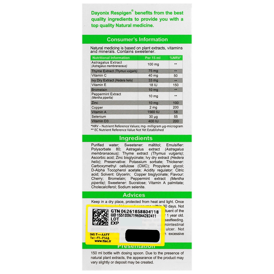موارد هشدار و احتیاط: - این محصول جایگزین رژیم غذایی متعادل و سبک زندگی سالم نمی باشد. - در صورت استفاده از سایر داروها، آلرژی به مواد غذایی و یا اجزای تشکیل دهنده این فراورده و در دوران بارداری و شیردهی و در بیماران دچار نقص سیستم ایمنی قبل از مصرف با پزشک یا داروساز مشورت نمایید. - در کودکان زیر 1 سال توصیه نمی شود. - بیشتر از مقدار توصیه شده مصرف نشود.
