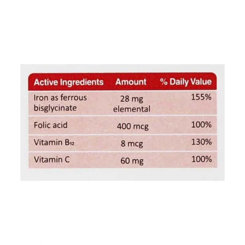 آهن فروس بیسگلیسینات یک فرم شلاته شده است که زیست دسترسی آن تا چهار برابر بیشتر از سایر فرمها مانند فروس سولفات است و مطالعات مقایسهای نشان میدهند که سطوح سرمی آهن را به طور مؤثرتری افزایش میدهد. ویتامین C با افزایش اسیدیته دستگاه گوارش، جذب آهن را تا شش برابر بهبود میبخشد و در تبدیل به فرم فعال آن نقش دارد، که این امر در پیشگیری از کمخونی حیاتی است. فولیک اسید در سنتز DNA و تولید گلبولهای قرمز ضروری است و کمبود آن منجر به آنمی مگالوبلاستیک میشود، در حالی که ویتامین B12 در تمایز اریتروبلاستها و حفظ میلین عصبی مؤثر است و ترکیب آنها با آهن، اثربخشی کلی را افزایش میدهد. این ترکیبات نه تنها آهن مورد نیاز را تأمین میکنند، بلکه از کمخونی جلوگیری کرده، به ساخت گلبولهای قرمز کمک میکنند و فعالیت سیستم عصبی را با کاهش خطر نوروپاتی حمایت مینمایند.