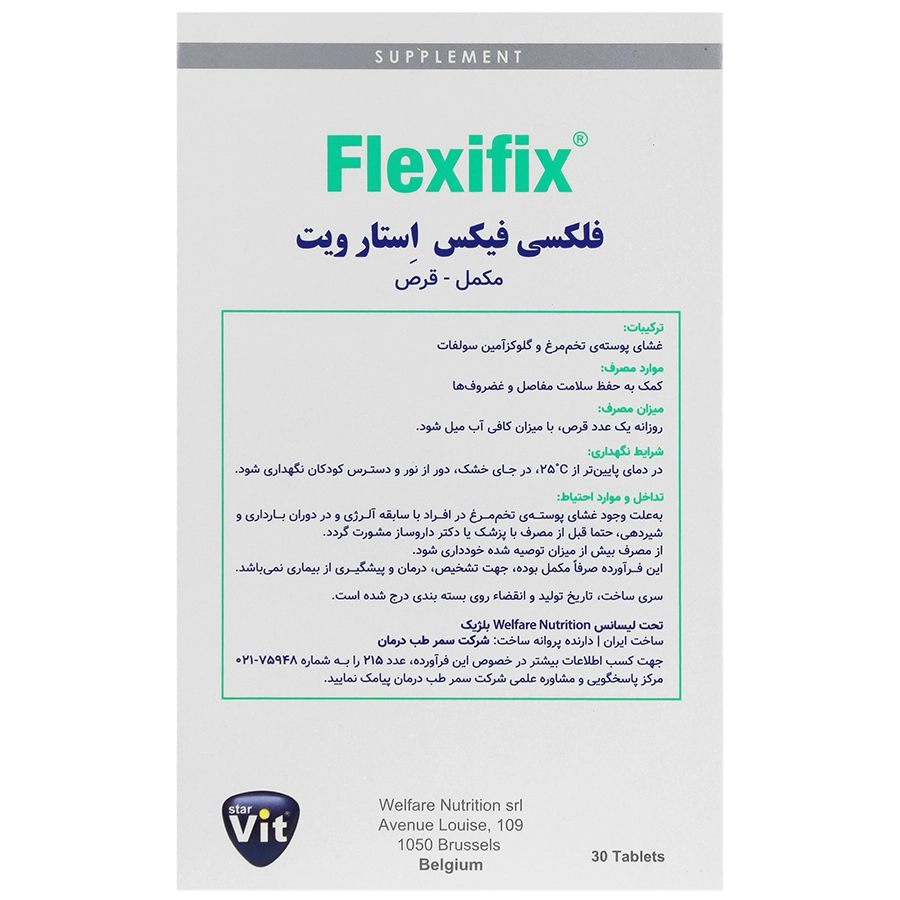 در هر قرص از فلکسی فیکس 250 میلی گرم غشای پوسته تخم مرغ و 750 میلی گرم گلوکزآمین سولفات وجود دارد.