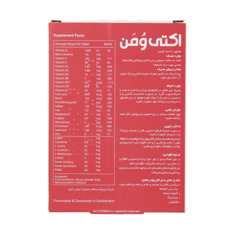 اکتی وومن، مولتی ویتامین اختصاصی بانوان