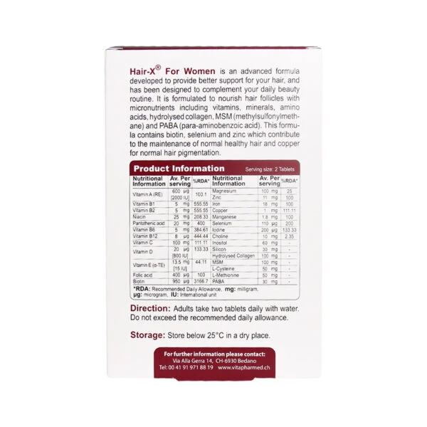 هر جعبه از قرص Hair X بانوان مناسب برای استفاده به مدت 30 روز است.