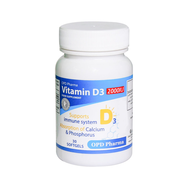 ویتامین د3 2000 او پی دی کمک کننده به حفظ سلامت استخوانها، دندانها به واسطه افزایش جذب کلسیم و فسفر
