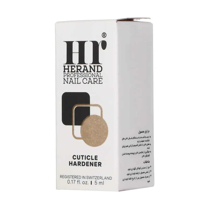 مقداری از محلول استحکام بخش کوتیکول ناخن هراند را روی سطح ناخن تمیز، خشک و عاری از هر گونه آلودگی بزنید. از تماس محلول با پوست اطراف کوتیکول خودداری کنید. اجازه دهید محلول خشک شود. پس از خشک شدن میتوانید از لاک ناخن استفاده نمایید.