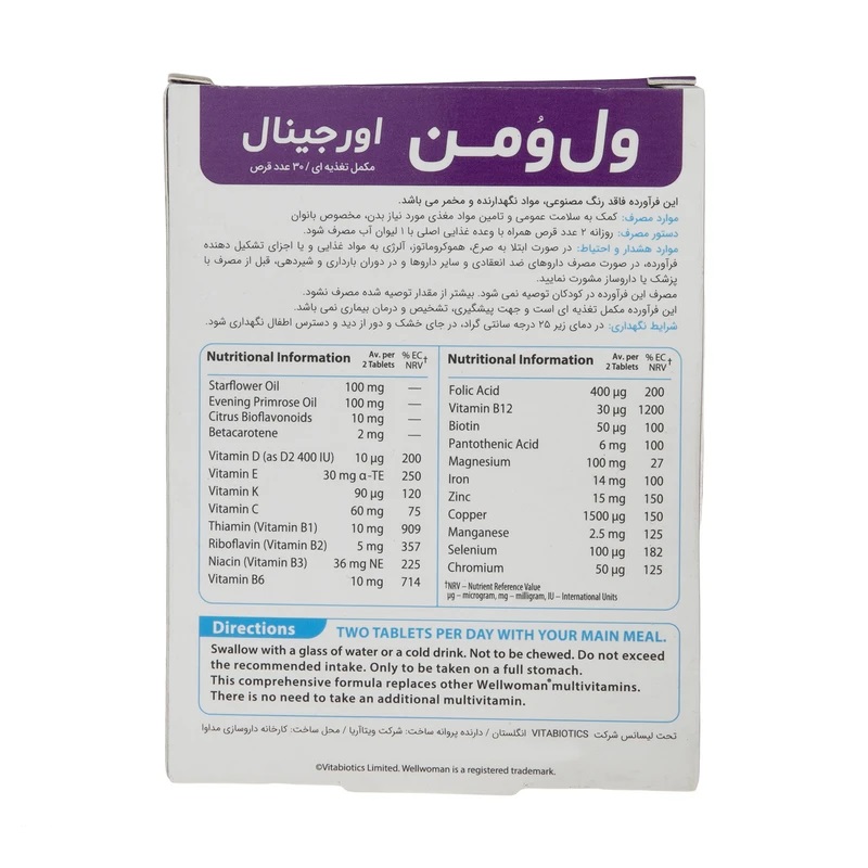 مولتی ویتامین ول وومن، فاقد هر گونه رنگ مصنوعی، مواد نگهدارنده و مخمر