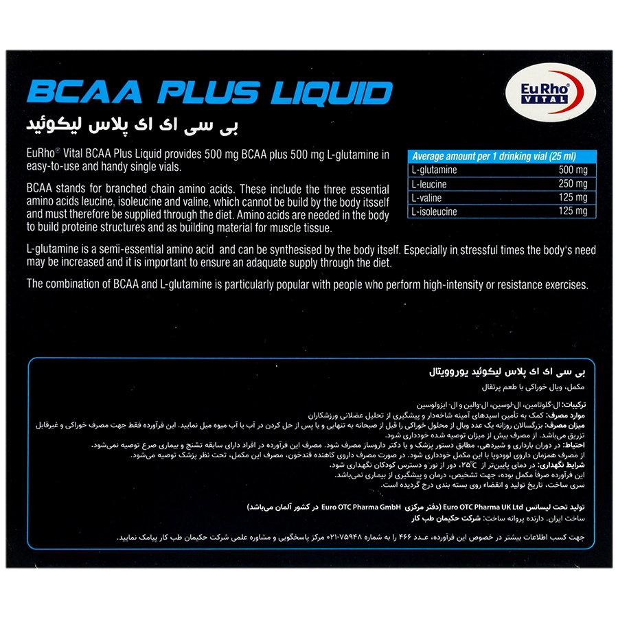 در کنار ترکیبات اصلی و مواد موثره، ترکیباتی در نقش مواد جانبی (کمکی و غیر موثره) به بی سی ای ای پلاس لیکوئید یوروویتال افزوده شده که شامل موارد زیر هستند: