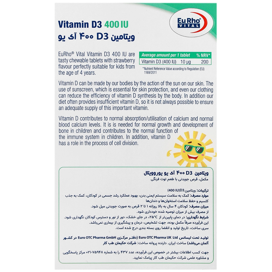 قرص د3 400 یوروویتال، مناسب برای کودکان بالای 4 سال