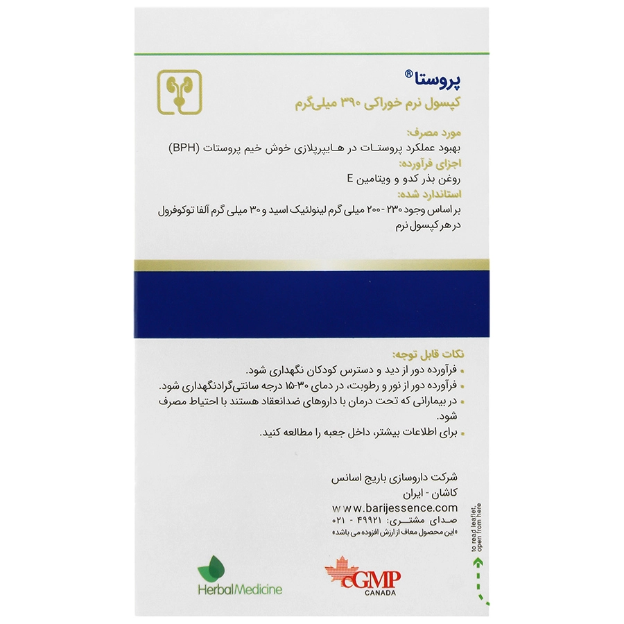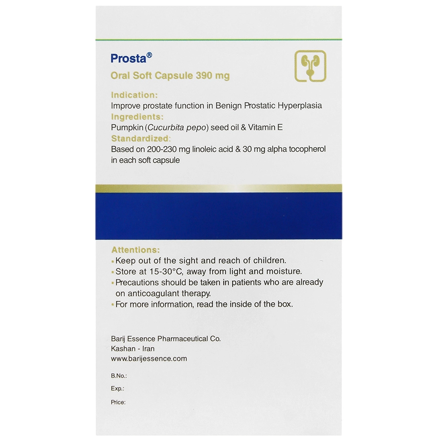 Prosta barij حاوی روغن بذر کدو (Pumpkin) و ویتامین E