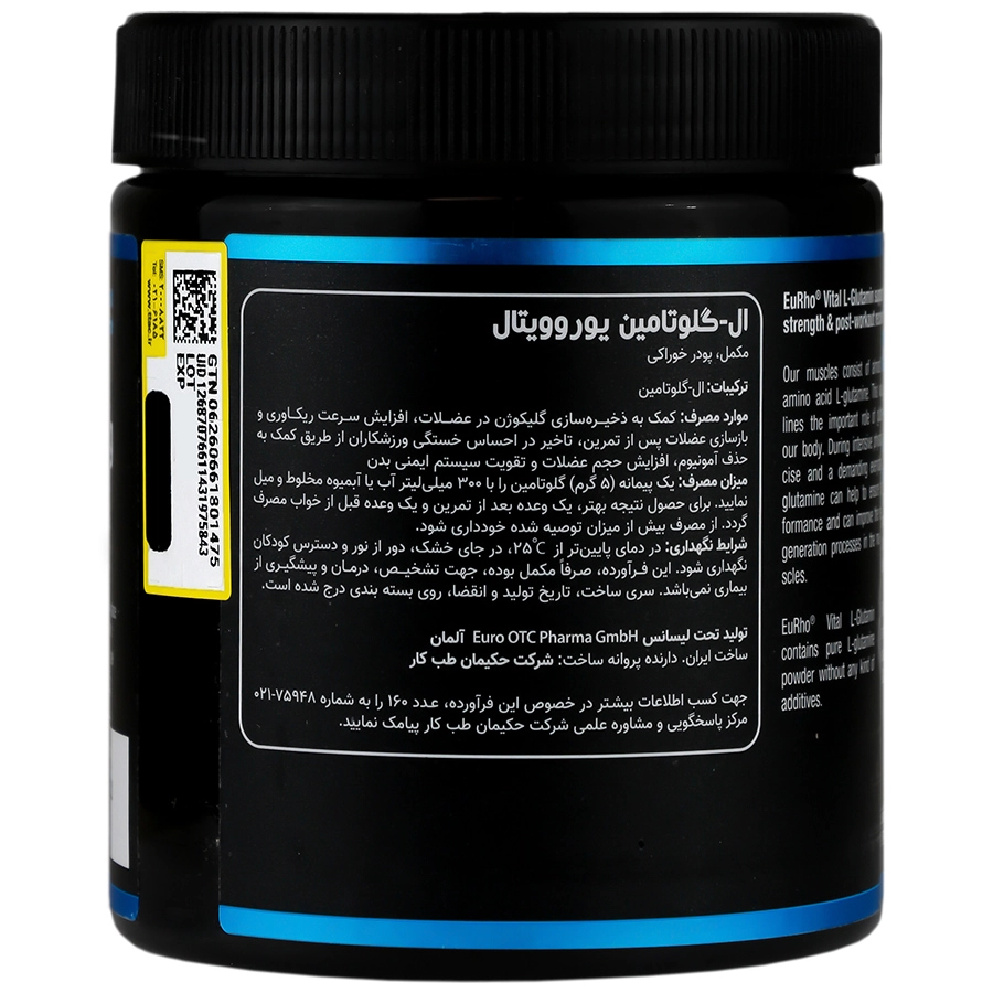 مکمل ال گلوتامین 5000 یوروویتال در هر قوطی حاوی 300 گرم پودر میباشد.