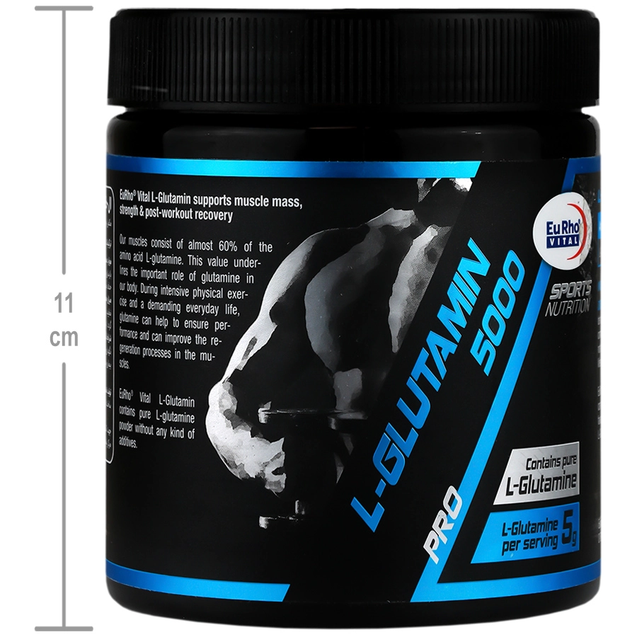 مکمل ال گلوتامین یوروویتال در هر سروینگ حاوی 5 گرم گلوتامین است.