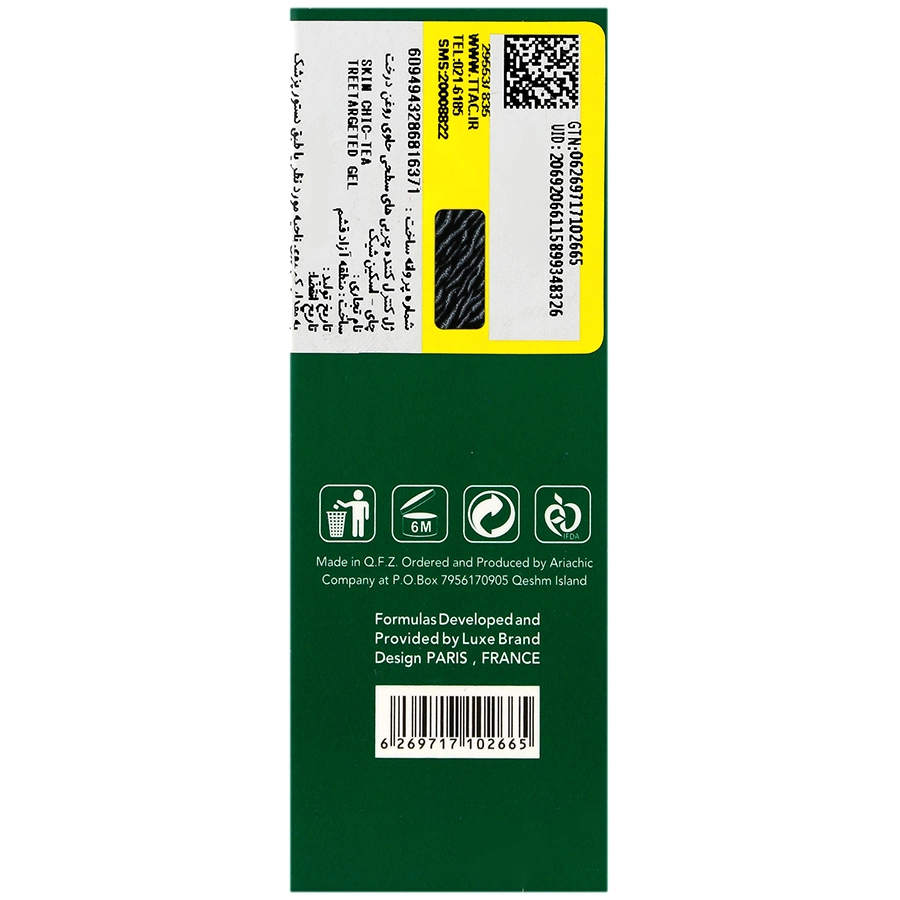 - ژل کنترل کننده چربی درخت چای اسکین شیک فقط برای استعمال خارجی مناسب است.