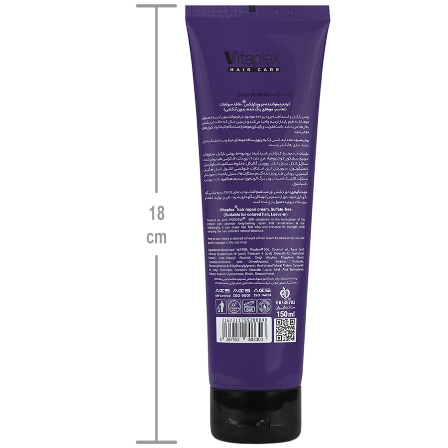 مقدار مناسبی از کرم ترمیم کننده موی رنگ شده ویتاپلکس را روی ساقه موهای مرطوب یا خشک پخش نمایید.