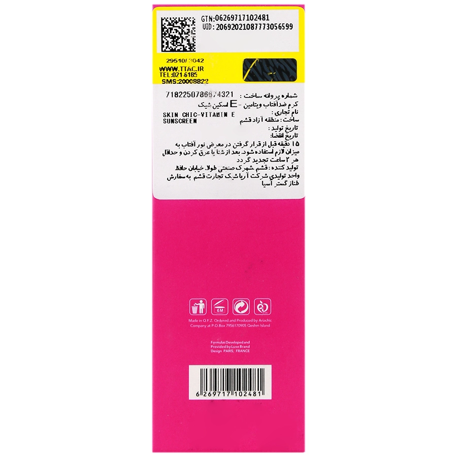 کرم ضد آفتاب ویتامین ای اسکین شیک، قابل استفاده برای انواع پوست