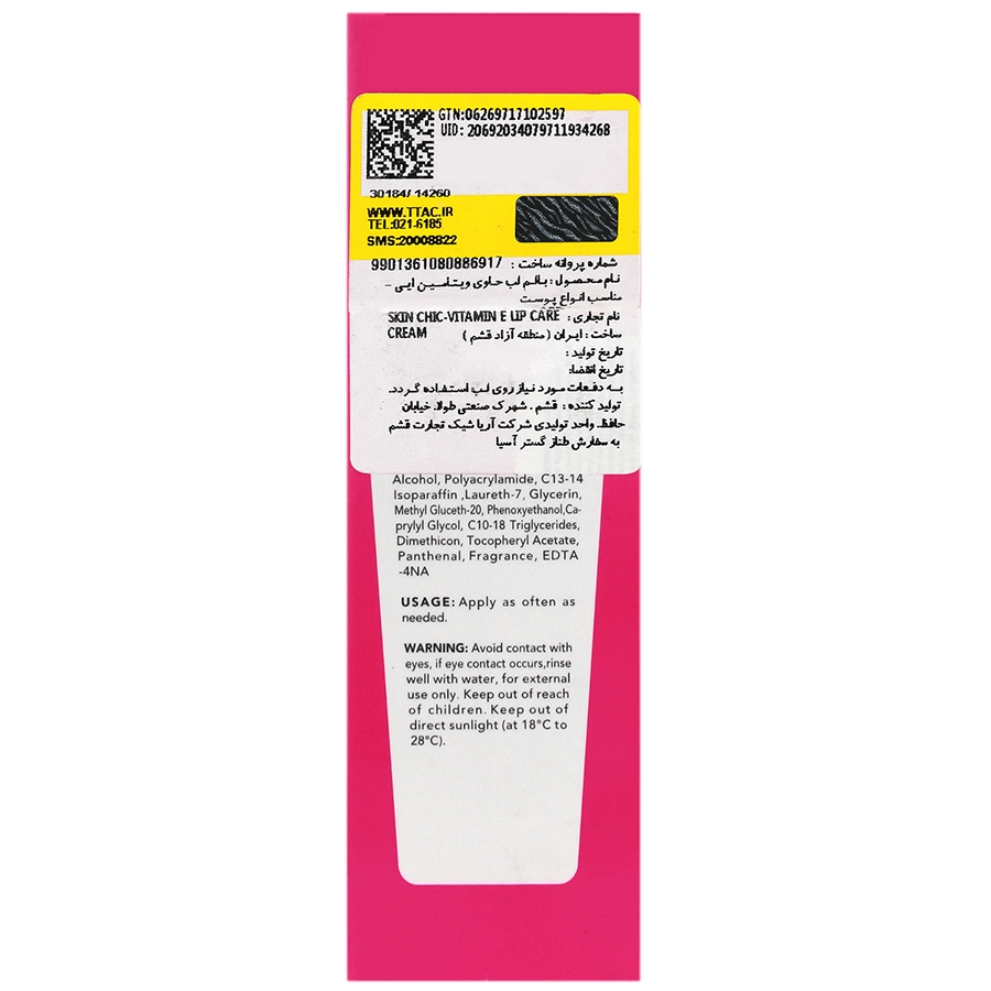 - کرم مرطوب کننده و محافظت کننده لب حاوی ویتامین E اسکین شیک را دور از دسترس کودکان و نور آفتاب (در دمای 18-28 درجه سانتی گراد) نگهداری کنید.